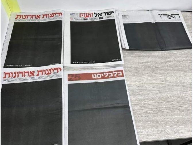 فوجئ الإسرائيليون، صباح الثلاثاء، بطباعة الصحف العبرية الكبرى، لصفحاتها الأولى باللون الأسود بدون أي كتابة أخرى.