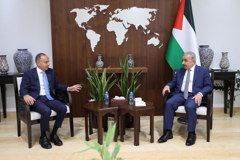 بحث رئيس الوزراء محمد اشتية، اليوم الثلاثاء، مع سفير جمهورية مصر العربية لدى فلسطين إيهاب سليمان، التطورات السياسية والميدانية في الساحة الفلسطينية، وذلك في ظل استمرار عدوان الاحتلال ضد أبناء الشعب الفلسطيني.
