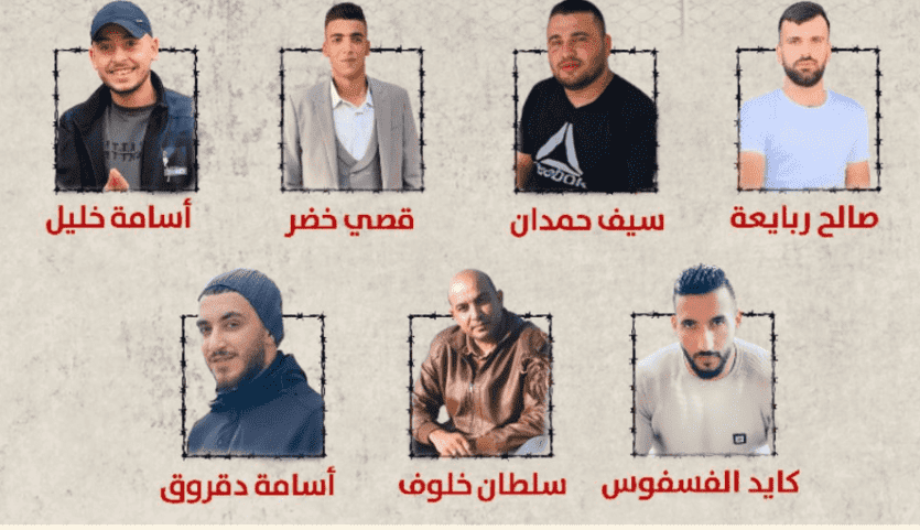ويواصل الأسرى: سيف حمدان (29 عاما)، وصالح ربايعة (22 عاما)، وقصي خضر (25 عاما)، وأسامة خليل (23 عاما)، إضرابهم عن الطعام منذ 11 يوما. كما يواصل الأسيران كايد الفسفوس (34 عاما) وسلطان خلوف (42 عاما) إضرابهما منذ سبعة أيام.