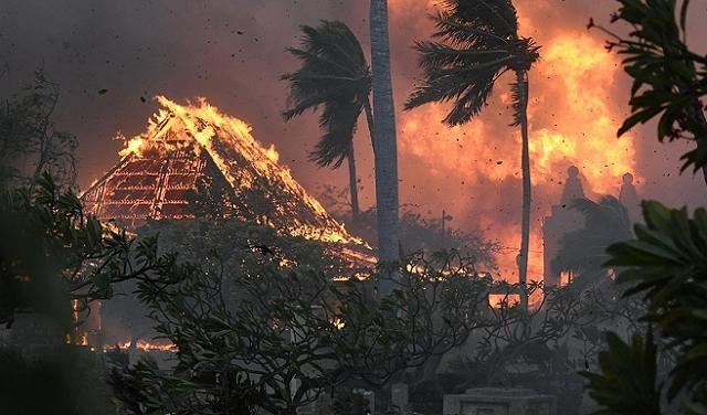 وفاجأت حرائق الغابات، التي دعمتها الرياح العاتية من إعصار دورا الذي يمر بعيدا إلى الجنوب، جزيرة ماوي، تاركة وراءها سيارات محترقة في شوارع كانت مزدحمة ذات يوم وأكوام من الأنقاض المدخنة حيث كانت مباني تاريخية قائمة.