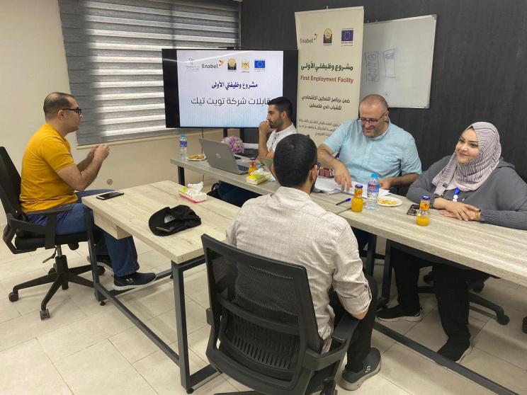 استكمالاً لإجراءات اختيار الخريجين المستفيدين من مشروع وظيفتي الأولى الذي ينفذه الصندوق الفلسطيني للتشغيل، ضمن برنامج التمكين الاقتصادي للشباب، بالشراكة مع الوكالة البلجيكية للتنمية، وبتمويل من الاتحاد الأوروبي، أجرى طاقم المشروع الذي يضم كل من منسقتي المشروع بالضفة الغربية وقطاع غزة م. نسمة السيد، ومجد اشتيوي، ورئيس قسم خدمات تطوير الأعمال بالضفة الغربية م. إيناس القبج، ومنسق خدمات التشغيل في قطاع غزة م.علي الزعانين، سلسلة من الزيارات الإشرافية إلى المواقع التي تعقد فيها مقابلات الخريجين المتقدمين للمشروع، وتهدف هذه الزيارات إلى متابعة عملية اختيار الخريجين، لضمان نجاحها وشفافيتها.