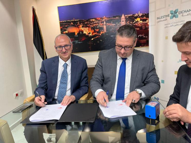 وقّع المدير العام لبورصة فلسطين، نهاد كمال، والمدير العام لشركة "الاعتماد المالي الاستثماري للوساطة المالية"، سامي شريم، اتفاقية "العضوية"، اليوم في مقرّ بورصة فلسطين.