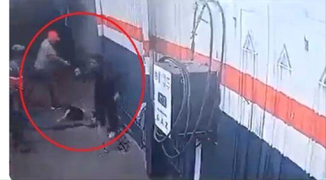 وفي الفيديو المتداول، تظهر المرأة وهي تحمل طفلها وتحاول الهرب من زوجها، ليقوم بإطلاق النار نحو قدميها فيسقط الطفل من يديها.