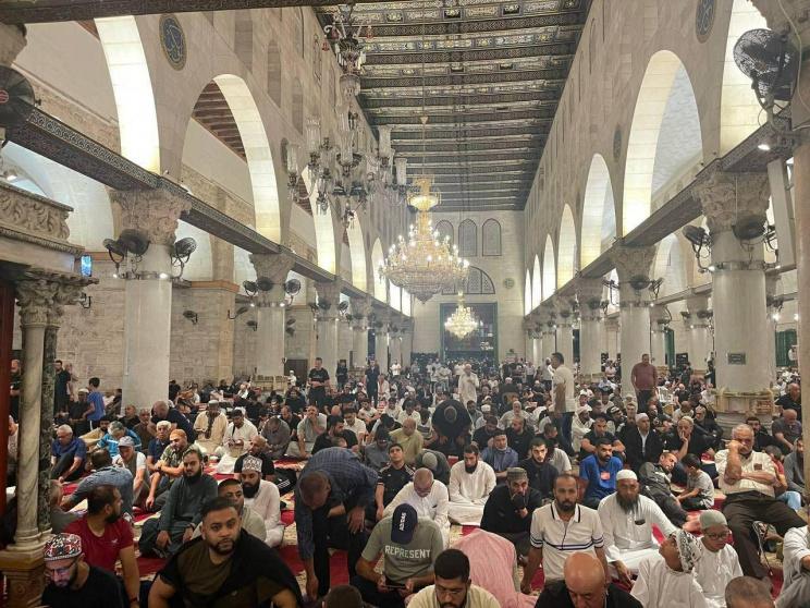 وأمّ آلاف المصلين باحات المسجد الأقصى لأداء صلاة الفجر، داخل المصليات المسقوفة وفي باحات المسجد، مؤكدين رفض انتهاكات الاحتلال ومحاولات تغيير الوضع القائم في المسجد.