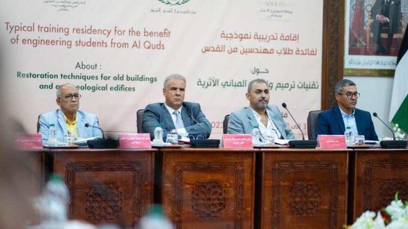 من جهتهم شكر الطلاب المهندسون الفلسطينيون، في كلمة ألقاها نيابة عنهم الطالب إسلام بزار، وكالة بيت مال القدس الشريف، على إتاحة الفرصة لهم للتدرب على تقنيات ترميم وإصلاح المباني الأثرية في المؤسسات والمعاهد المتخصصة في المغرب، والتعرف عن قرب على جمال وتنوع الفن المعماري المغربي.