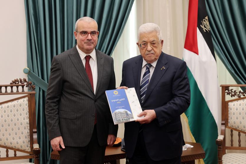 تسلم رئيس دولة فلسطين محمود عباس، مساء اليوم الثلاثاء، التقرير السنوي لسلطة النقد الفلسطينية عن عام 2022.