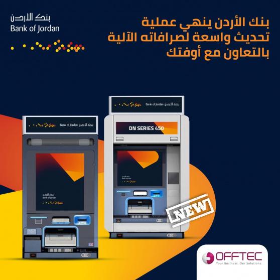 أنهت شركة أوفتك مشروع تحديث 26 صراف آلي لصالح بنك الأردن، حيث تم استبدال الصرافات بصرافات جديدة ومتطورة تابعة لشركة "Diebold Nixdorf” الأمريكية الألمانية المتخصصة بحلول التكنولوجيا البنكية.