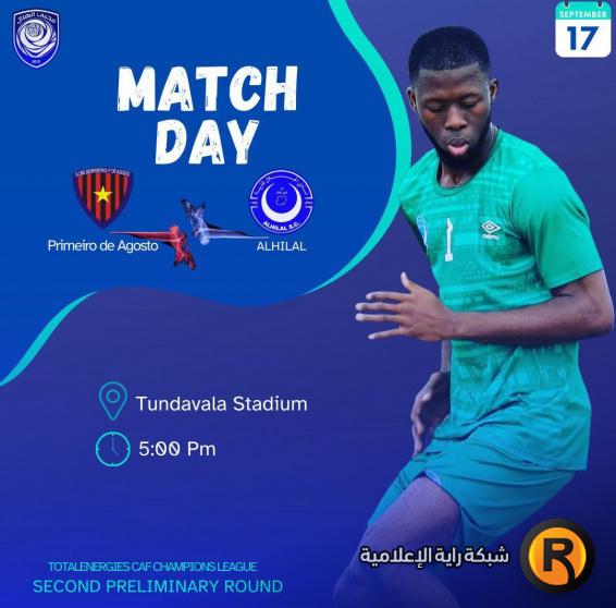 تردد قناة الزرقاء ميديا الناقلة لمباراة الهلال السوداني ضد أول أغسطس الأنجولي اليوم الأحد ضمن منافسات الدور التمهيدي الثاني المؤهل إلى دور المجموعات في دوري أبطال أفريقيا لكرة القدم الموسم 2023-2024.