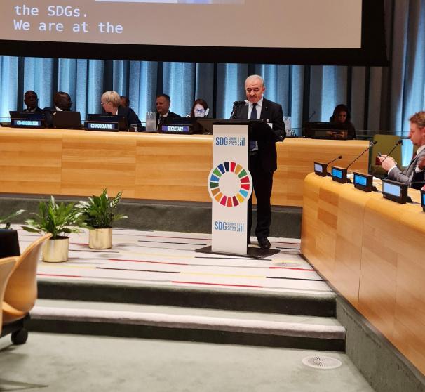 وأكد رئيس الوزراء في خطابه في قمة أهداف التنمية المستدامة، في مقر الأمم المتحدة في نيويورك، "أنه مع انقضاء منتصف المدة منذ اعتماد أجندة التنمية المستدامة، ما زلنا بعيدين جدا عن تحقيق أهدافنا بحلول عام 2030، ما يحتم علينا أن نعمل معا لتبني إجراءات عملية للتغلب على الأزمات المتعددة التي نواجهها".