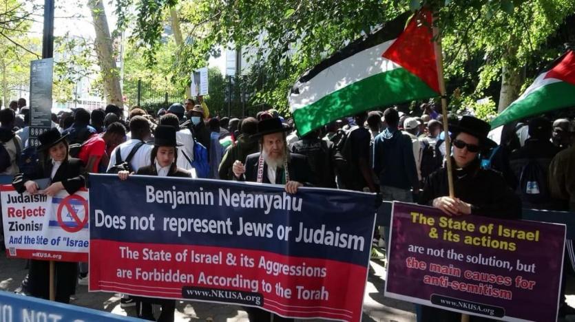 تظاهر عشرات الحاخامات اليهود، ممن يرفضون الصهيونية في الولايات المتحدة الأميركية، احتجاجا على اجتماع بنيامين نتنياهو مع الرئيس الأميركي جو بايدن على هامش اجتماعات الجمعية العامة للأمم المتحدة في مدينة نيويورك.