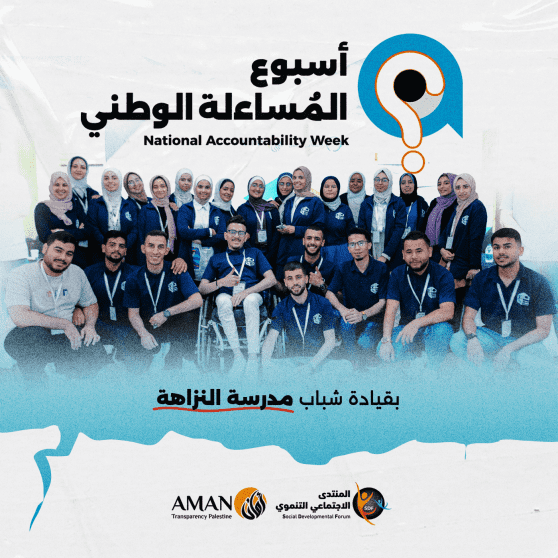 للعام الرابع على التوالي؛ انطلقت فعاليات أسبوع المُساءلة الوطني، بتنفيذ الائتلاف من أجل النزاهة والمساءلة- أمان، والتي تتواصل على مدار أسبوع، في مختلف مُحافظات قطاع غزة، انطلاقًا من الثالث والعشرين من سبتمبر/أيلول من العام 2023، بالشراكة مع عدد من مؤسسات المجتمع المدني.