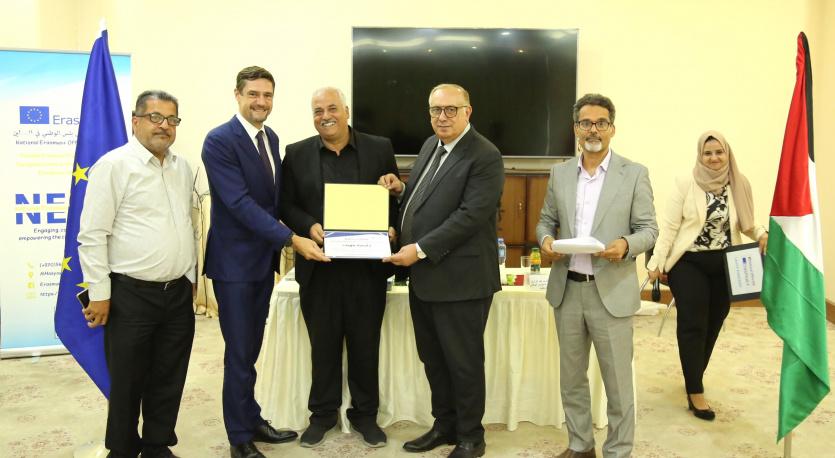 وأشار إلى أنه ومن خلال هذه المشاريع ستبدأ الجامعات الفلسطينية ومؤسسات القطاع الخاص بإقامة شراكات إقليمية والحفاظ عليها مع الأردن ولبنان، وشراكات مع جامعات أوروبية، مشيداً بمكتب إيراسموس الوطني وما قدّمه من دعم وتوجيه لفرق المشروع في شطري الوطن، شاكراً في الوقت ذاته الاتحاد الأوروبي على متابعته المستمرة وتعاونه وتنسيقه مع موظفي الوزارة ومكتب إيراسموس.