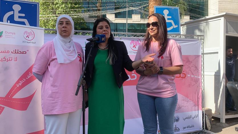وعبّرت ربى مسروجي، رئيسة مجلس إدارة المركز عن فخر المركز باختيار الفنانة موسى سفيرة لمكافحة سرطان الثدي عند نساء فلسطين، وذلك خلال برنامج إطلاق حملة "أكتوبر 2023"، من ساحة راشد الحدادين مقابل بلدية رام الله، أمس، بحضور د. ليلى غنام، محافظ محافظة رام الله والبيرة، ومديرة المركز الدكتورة نفوز مسلماني، مشيرة إلى أن مركز "دنيا" التخصصي لأورام السرطان يعوّل كثيراً عن دور الشخصيات المؤثرة في هذا النوع من الحملات، وخاصة النساء منهم، لدورهن الريادي القادر على إحداث الفارق في هذا الجانب.