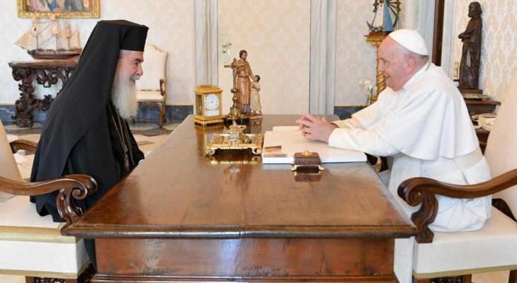 التقى بطريرك القدس وسائر أعمال فلسطين والأردن ثيوفيلوس الثالث، الجمعة، بقداسة البابا فرنسيس في الفاتيكان.
