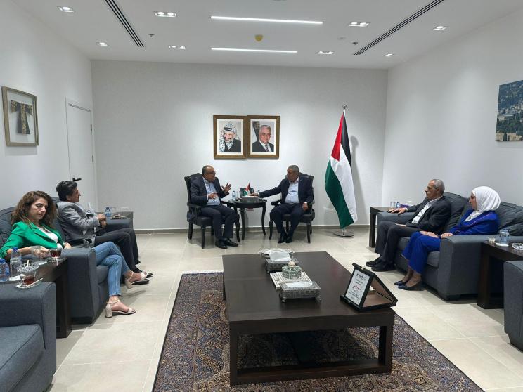 زار وفد من وزارة الثقافة الفلسطينية اليوم الأحد، وزير الشؤون المدنية وأمين سر اللجنة التنفيذية لمنظمة التحرير الأخ حسين الشيخ "أبو جهاد".