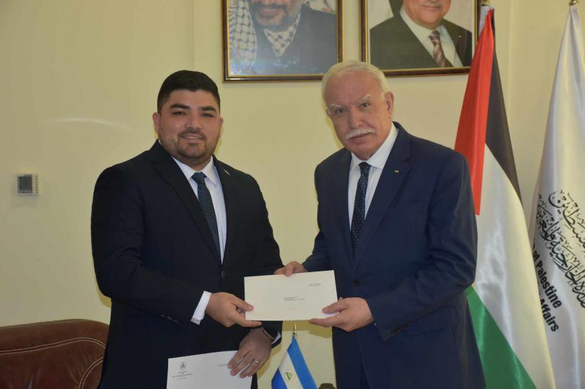 المالكي يتسلم نسخة من أوراق اعتماد سفير نيكاراغوا الجديد لدى دولة فلسطين