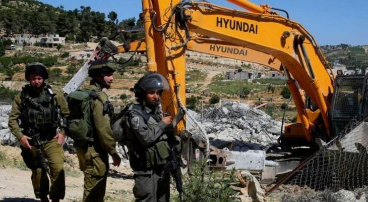 الاحتلال يهدم منزلا وحظيرة ويجرف أراضي ويقتلع أشجار في قرية بيرين جنوب شرق الخليل
