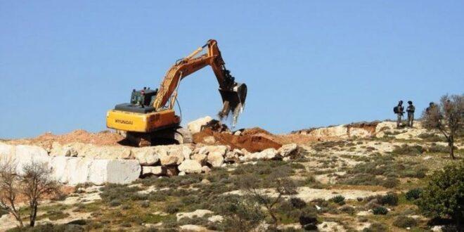 مستوطنون يشقون طريقا استيطانيا بمسافر يطا جنوب الخليل