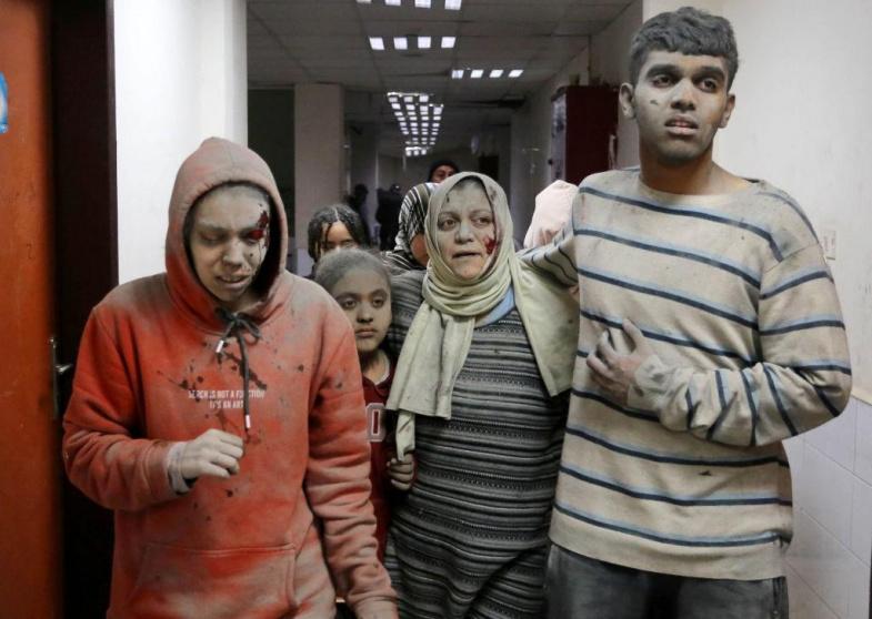 وقال المكتب الإعلامي الحكومي في غزة، إن جيش الاحتلال الإسرائيلي يرتكب مجزرة مُروّعة بالمحافظة الوسطى حيث قصفت الطائرات الحربية المقاتلة أربعة منازل مدنية آمنة راح ضحيتها 40 شهيداً وأكثر من 100 إصابة حتى الآن، أكثر من 90% من الضحايا هم من الأطفال والنساء.