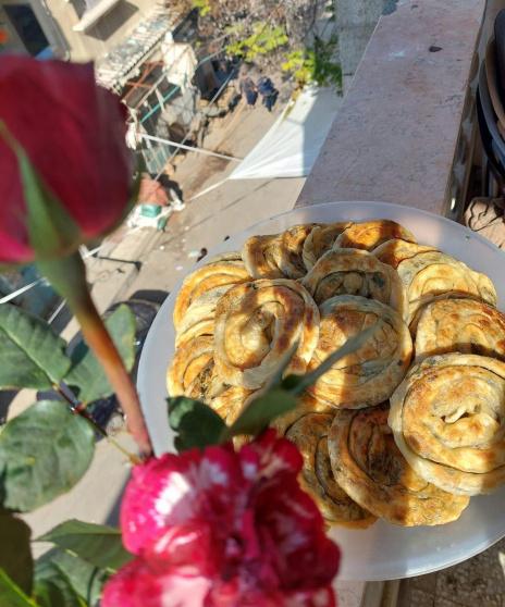 تلف ولاء بيديها رقائق السبانخ الذهبية برفقٍ ودقّة، وكأنها تصنع تحفة فنية تنبهر بها العين وتشتهي النفس أن تمتلكها، وتقول لـ "شبكة راية": "أول ما عرضت الفطائر كانت تباع بثواني، حسيت أنه الناس كانت تستنى هيك شي من زمان".