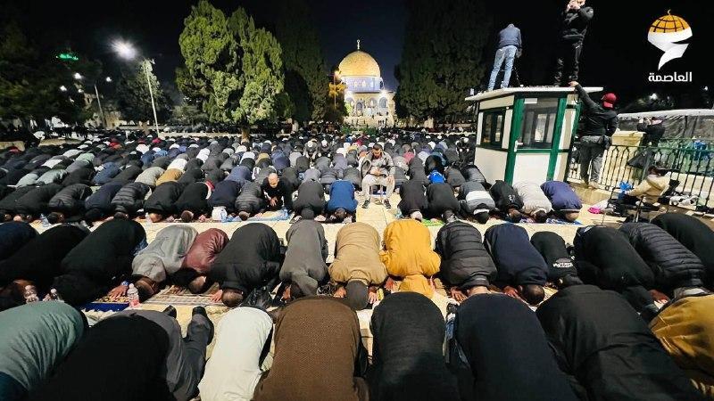أدى آلاف المواطنين صلاتي العشاء والتراويح في رحاب المسجد الأقصى المبارك، اليوم الخميس، رغم قيود الاحتلال الإسرائيلي.