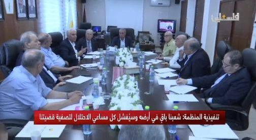 وقررت اللجنة التنفيذية، مواجهة والتصدي لكل هذه الإجراءات، ودعوة القوى الفلسطينية كافة، وجماهير شعبنا للوقوف سوية وبكل الوسائل الشعبية والسياسية الشاملة في مواجهة مجمل هذه السياسات والإجراءات.