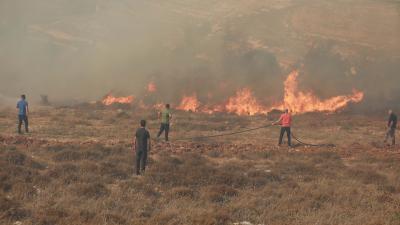 يشار إلى أن المستوطنين يمنعون بقوة السلاح المواطنين منذ أشهر من الوصول إلى أراضيهم، ما أدى إلى تكاثر الأعشاب في الحقول المزروعة بأشجار الزيتون، الأمر الذي ساعد على انتشار الحريق بسرعة.