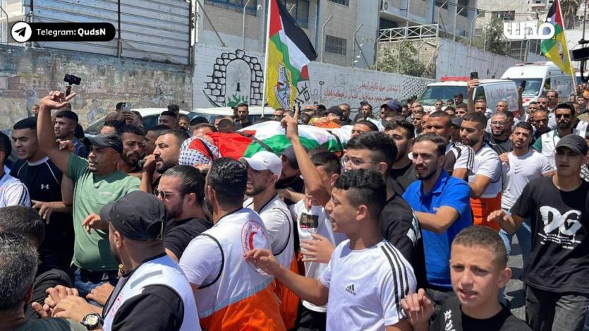 وكانت وزارة الصحة أعلنت أمس، استشهاد الشاب تامر جلال محمد صقر (21 عاما)، المتطوع لدى الهلال الأحمر، متأثرا بجروح أصيب بها خلال اقتحام مخيم بلاطة يوم السبت الماضي، خلال اخلائه اصابات عقب استهداف مجموعة من الشبان بواسطة طائرة مسيرة.