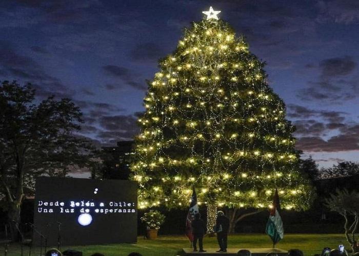 وأضيئت الشجرة بـ 45 ألف ضوء كرمز لشهداء الشعب الفلسطيني الذين ارتقوا خلال حرب الإبادة التي يشنها الاحتلال الإسرائيلي، تحت شعار "نور من الأمل"، بحضور وزيرة الدفاع، ووزيرة الخارجية بالإنابة، وسفيرة دولة فلسطين لدى تشيلي فيرا بابون، وعدد من البرلمانيين والدبلوماسيين وأبناء الجالية الفلسطينية.