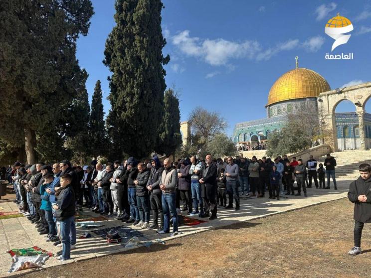 أدى الآلاف من أبناء شعبنا، صلاة اليوم الجمعة في المسجد الأقصى المبارك وباحاته، في ظل الإجراءات العسكرية المشددة التي تفرضها قوات الاحتلال الإسرائيلي على الوصول إلى المسجد.
