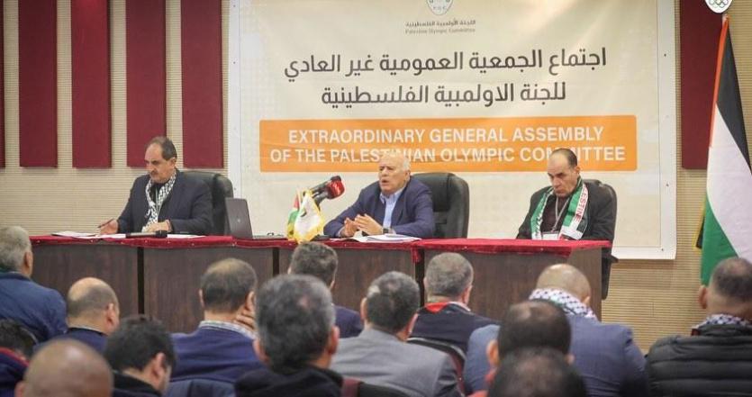 عقدت اللجنة الأولمبية الفلسطينية، اليوم السبت، اجتماع جمعيتها العمومية "غير العادي"، في الأكاديمية الوطنية الرياضية "بلاتر"، بمدينة البيرة.