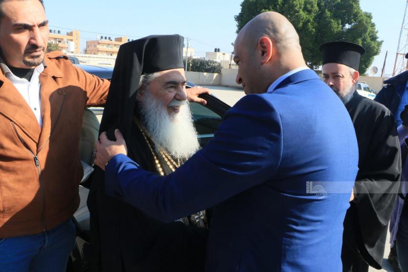 وجاء ذلك خلال استقبال محافظ أريحا والأغوار حسين حمايل، بطريرك المدينة المقدسة وسائر أعمال فلسطين والأردن للروم الأرثوذكس كيريوس كيريوس ثيوفيلوس الثالث، والقنصل اليوناني العام لدى دولة فلسطين ديميتريرس انجيلوسوبولس، والناطق الاعلامي باسم بطريركية الروم الارثوذكس المقدسية الاب عيسى مصلح في دار المحافظة، بحضور وفد من رجال الدين المسيحي وقادة الأجهزة الامنية والمؤسسات المدنية وفعاليات المحافظة.