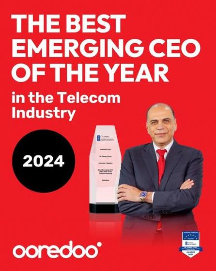 وختم: "إن هذه الجائزة ليست مجرد تقدير شخصي لي، بل هي شهادة على تفاني فريق Ooredoo فلسطين بأكمله، ودليل على أن العمل الجماعي يمكنه تحقيق إنجازات استثنائية حتى في أحلك الأوقات، أتطلع إلى استمرارنا في تقديم أفضل الخدمات لشعبنا الفلسطيني والعمل نحو مستقبل أكثر إشراقًا للجميع، وكلي أمل أن يحمل هذا العام المزيد من الخير والسلام لشعبنا الفلسطيني".