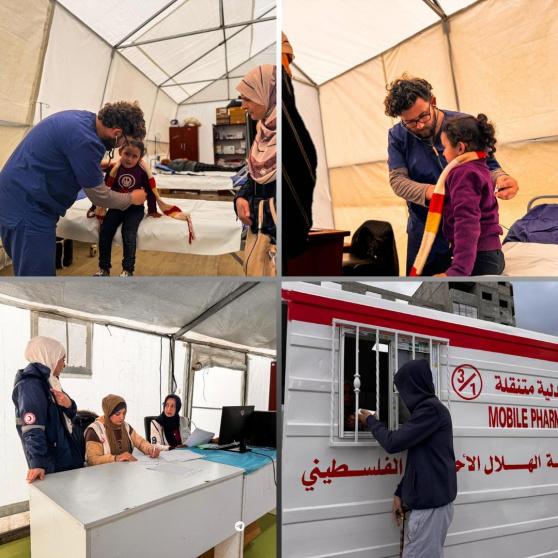 في يومه الأول: مستشفى الهلال الأحمر الميداني بمدينة غزة يعالج عشرات المرضى والجرحى