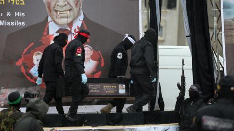 وقال أبو عبيدة في بيان مقتضب: في إطار صفقة طوفان الاقصى لتبادل الأسرى، قررت كتائب الشهيد عز الدين القسام أن تقوم الليلة بتسليم جثامين الأسرى الصهاينة التالية أسماؤهم:
