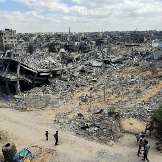 ويعيش نصف القطاع حاليا في مراكز إيواء وخيام تفتقر إلى الحد الأدنى من مقومات الحياة الآدمية، وسط دمار هائل وغير مسبوق في البنى التحتية وممتلكات المواطنين، حيث تشير التقديرات الى أن أكثر من 80% من قطاع غزة مدمر.