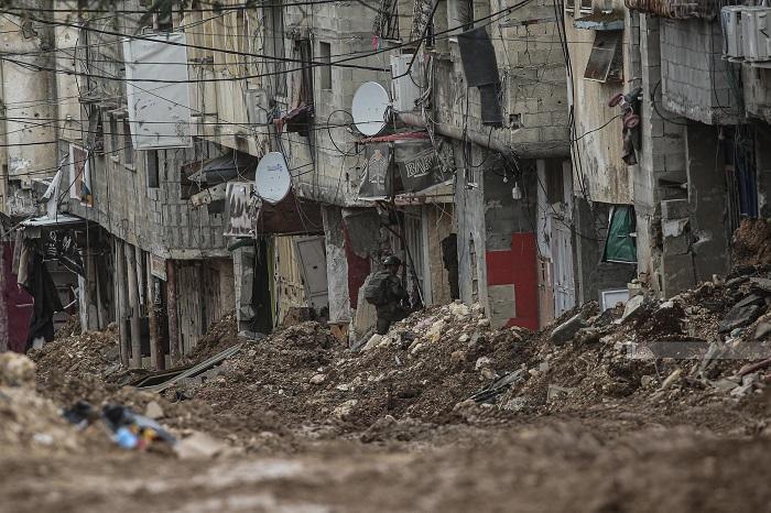 ونفذت جرافات الاحتلال عمليات تجريف واسعة في شوارع حارة قاقون بالمخيم، وأحدثت تدميرا إضافيا في البنية التحتية، كما أغلقت الأزقة والمداخل بالركام والسواتر الترابية، في وقت سمعت فيه أصوات انفجارات داخل المخيم.