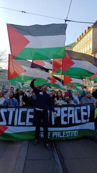 ورفع المشاركون في المسيرة التي سارت أمام محطة القطارات الاعلام الفلسطينية مرددين شعارات ترفض الإبادة الجماعية وقتل المدنيين من الاطفال والنساء واستمرار سياسة الجوع الجماعي على أهالي قطاع غزة في شهر رمضان.