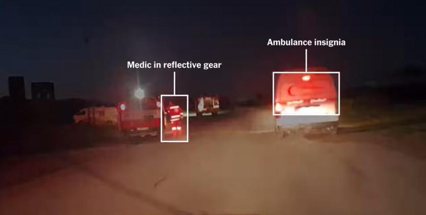 وأوضحت "نيويورك تايمز" أن الفيديو، الذي تسلمته من دبلوماسي رفيع في الأمم المتحدة، يُظهر بوضوح مركبات الإسعاف وشاحنة إطفاء كانت تقلّ 14 من عناصر الإسعاف والدفاع المدني، ومصابيح الطوارئ في تلك المركبات كانت تعمل لحظة تعرضها لإطلاق النار، ما يُكذّب الادعاءات الإسرائيلية بأن المركبات كانت "تتحرك بشكل مريب"، دون إضاءة أو إشارات تحذيرية.