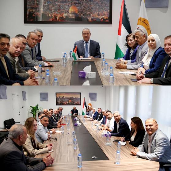 استقبل نائب الرئيس الفلسطيني السيد حسين الشيخ، مجموعة من مدراء ورؤساء مجالس إدارة منظمات ومؤسسات المجتمع المدني، وذلك بهدف مناقشة أبرز التحديات التي تمر بها القضية الفلسطينية.