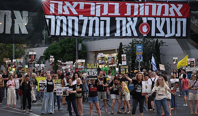 تظاهرت عائلات أسرى إسرائيليين مساء السبت، قبالة مقر وزارة الأمن في تل أبيب، للمطالبة بإبرام صفقة تبادل شاملة وإنهاء الحرب على غزة.