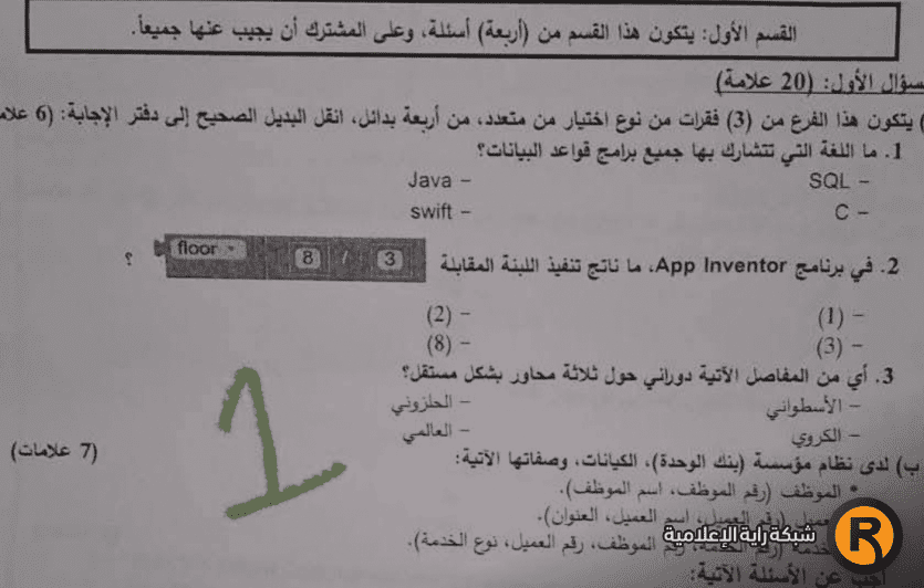 ورقة أسئلة امتحان التكنولوجيا للفرعين العلمي والصناعي 2025: