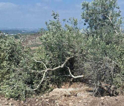 الاحتلال يقتلع ويكسر عشرات أشجار الزيتون في ظهر العبد جنوب جنين