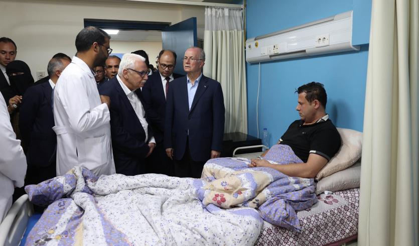 ورافق رئيس الوزراء في الجولة: وزير الداخلية اللواء زياد هب الريح، ووزير الصحة ماجد أبو رمضان، ووزير التخطيط والتعاون الدولي اسطفان سلامة، ووزيرة التنمية الاجتماعية والإغاثة سماح حمد، وسفير دولة فلسطين لدى جمهورية مصر العربية دياب اللوح.