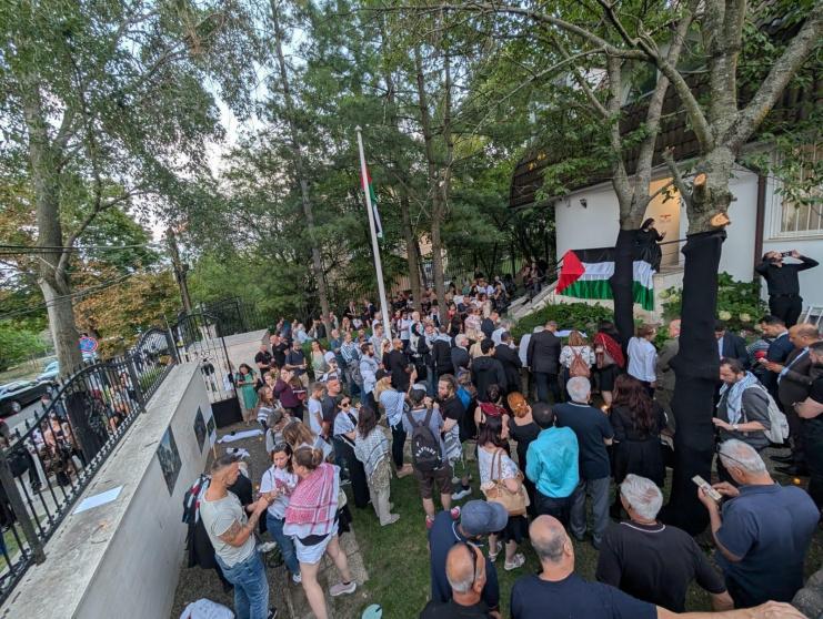 وعبرت سفارة دولة فلسطين عن بالغ شكرها لكل من حضر وأظهر تضامنه، مؤكدة أن "مثل هذه اللحظات تمنح الشعب الفلسطيني القوة والعزم، للاستمرار في طريق النضال حتى تحقيق العدالة والحرية والكرامة."