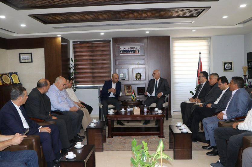 عقد وزير الزراعة البروفيسور رزق سليمية، اليوم الثلاثاء، في مقر الوزارة برام الله، اجتماعاً موسعاً ضمّ محافظ أريحا والأغوار الدكتور حسين حمايل، ورئيس الغرفة التجارية في أريحا السيد تيسير حميدة، وممثلين عن قطاع التمور الفلسطيني من بينهم السيد محمد صوافطة (رئيس اتحاد مصدري التمور)، و د. خضر زواهرة (شركة الرواد)، ، والسيد عصام اشتية (شركة قطاف)، والسيد مؤمن سنقرط (شركة بال جاردنز)، والسيد نبيل عبد الرازق (شركة الصفوة)، والسيد مصعب الراميني (شركة مزارع فلسطين)، والسيد حسن دعيق (شركة الوادي)، إلى جانب عطوفة وكيل الوزارة والوكلاء المساعدين المهندس أمجد صلاح والسيد طارق أبو لبن، ومدير زراعة أريحا المهندس أشرف بركات، ومدير عام العلاقات الدولية والعامة المهندس محمود فطافطة، وذلك لبحث سبل تطوير القطاع الزراعي في محافظة أريحا والأغوار، ومناقشة معايير الكوتا التركية الخاصة بتصدير التمور الفلسطينية وآليات تنظيم توقيت توزيعها.