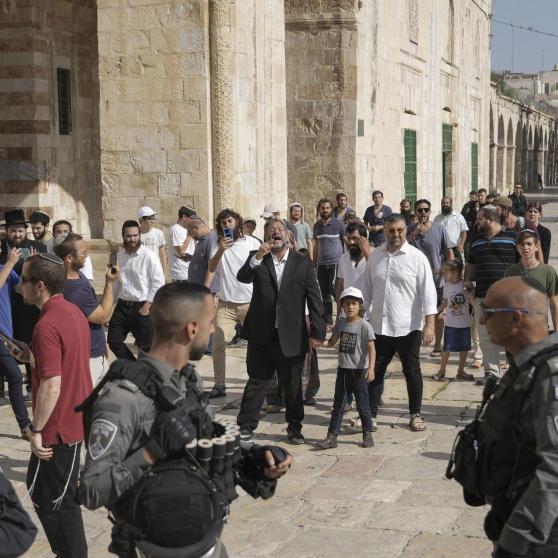 وأفادت محافظة القدس، بأن هؤلاء المستعمرين اقتحموا المسجد الأقصى على شكل مجموعات، ونفذوا جولات استفزازية في باحاته، وأدوا طقوسا تلمودية، بحماية قوات الاحتلال.