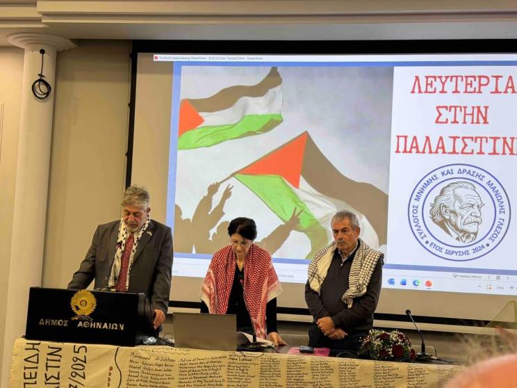 شهدت العاصمة اليونانية أمس فعالية بعنوان "مانوليس غليزوس وفلسطين" التي نظّمتها "مؤسسة ذاكرة وعمل مانوليس غليزوس" في مدرج "أنطونيس تريتسيس" بالمركز الثقافي لبلدية أثينا ، بحضور حشد كبير من أعضاء المؤسسة، وقوى اليسار اليوناني، ومنظمات التضامن، والجالية الفلسطينية، وحركة المقاطعة، وشخصيات سياسية ودبلوماسية، من بينها رئيس بلدية أثينا وعدد من السفراء من كوبا وفنزويلا ونيكارغوا وجنوب افريقيا وروسيا .
