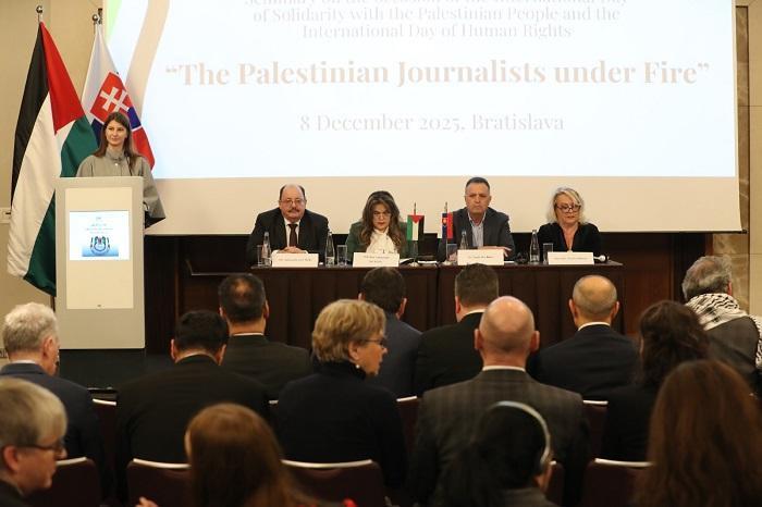 وفي كلمتها الافتتاحية، أكدت سفيرة دولة فلسطين لدى سلوفاكيا صفاء الخالدي، أن الصحفيين الفلسطينيين يجسّدون شجاعة استثنائية في الدفاع عن الحقيقة، رغم الاستهداف المتواصل الذي أدى إلى استشهاد 256 صحفيًا منذ بدء العدوان الإسرائيلي قبل أكثر من عامين.