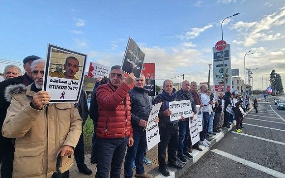 ورفع المتظاهرون الذين كان من بينهم عائلات وأقارب ضحايا جرائم قتل، صورا للضحايا في البلدة من بينهم الطالب نبيل صفية ونضال مساعدة، بالإضافة إلى شعارات مطالبة بوقف الجريمة منها بينها "أوقفوا الجريمة"، "يا حامل السلام دم أولادنا مش رخيص"، "شعبي قرر شعبي حر الجريمة ما بتمر".